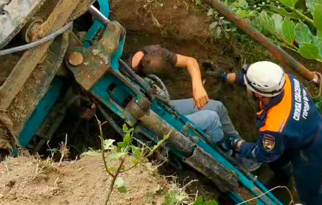 Инцидент произошел в Хостинском районе города. Во время строительных работ маленький экскаватор упал в канаву, закрыв вход водителю — 40-летнему местному жителю.